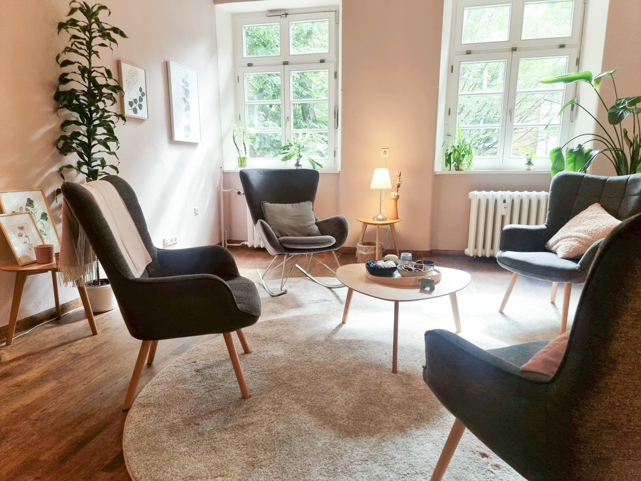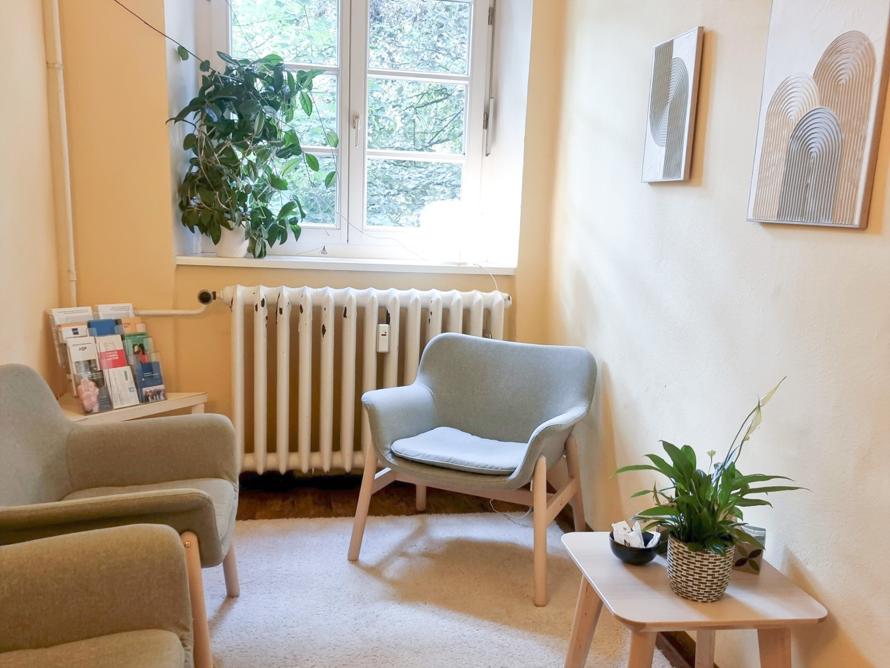 Insgesamt gibt es zwei Räume, die ausschließlich für Beratungen genutzt werden. In beiden Räumen gibt es stabile, geräumige Sessel, mit hoher Rückenlehne und genug Platz. In jedem Raum gibt es einen Schaukelstuhl.